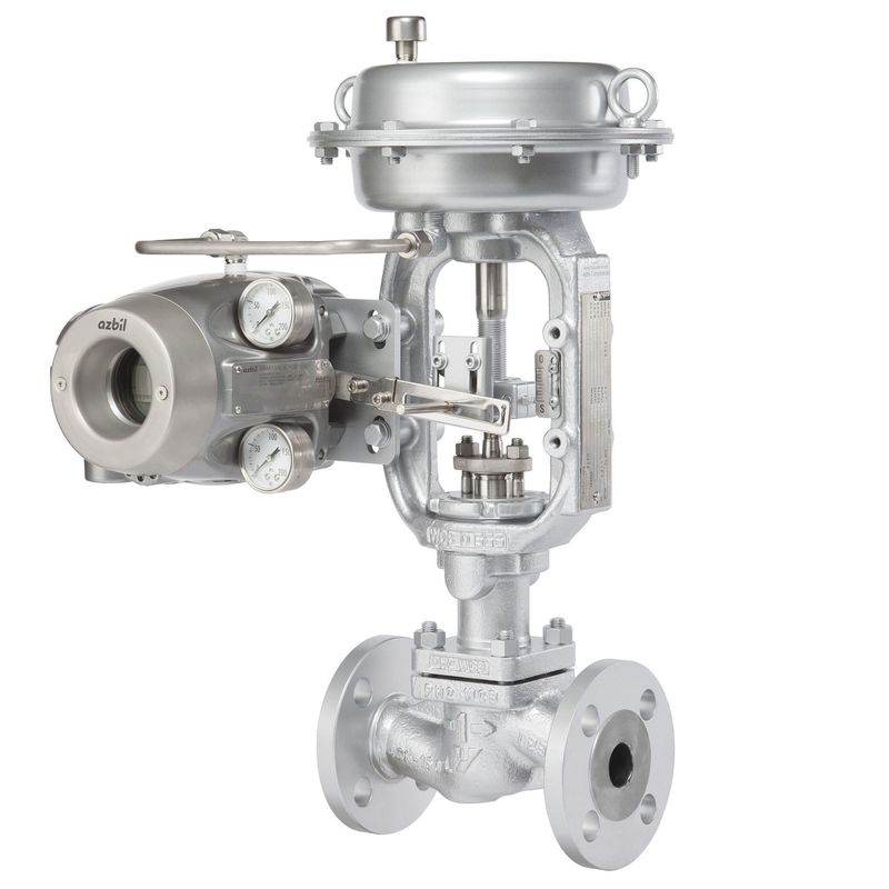 Top-guided Single-seat control valve features a compact valve body with excellent flow control and minimum pressure loss. Manufactured by Azbil Corporation.